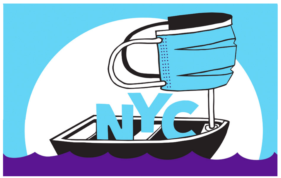 Στη δική του σημαία, ο Κουνς έγραψε με λαμπερά χρυσά μπαλόνια το ακρωνύμιο «NYC», σε ένα πολύχρωμο καρό φόντο.