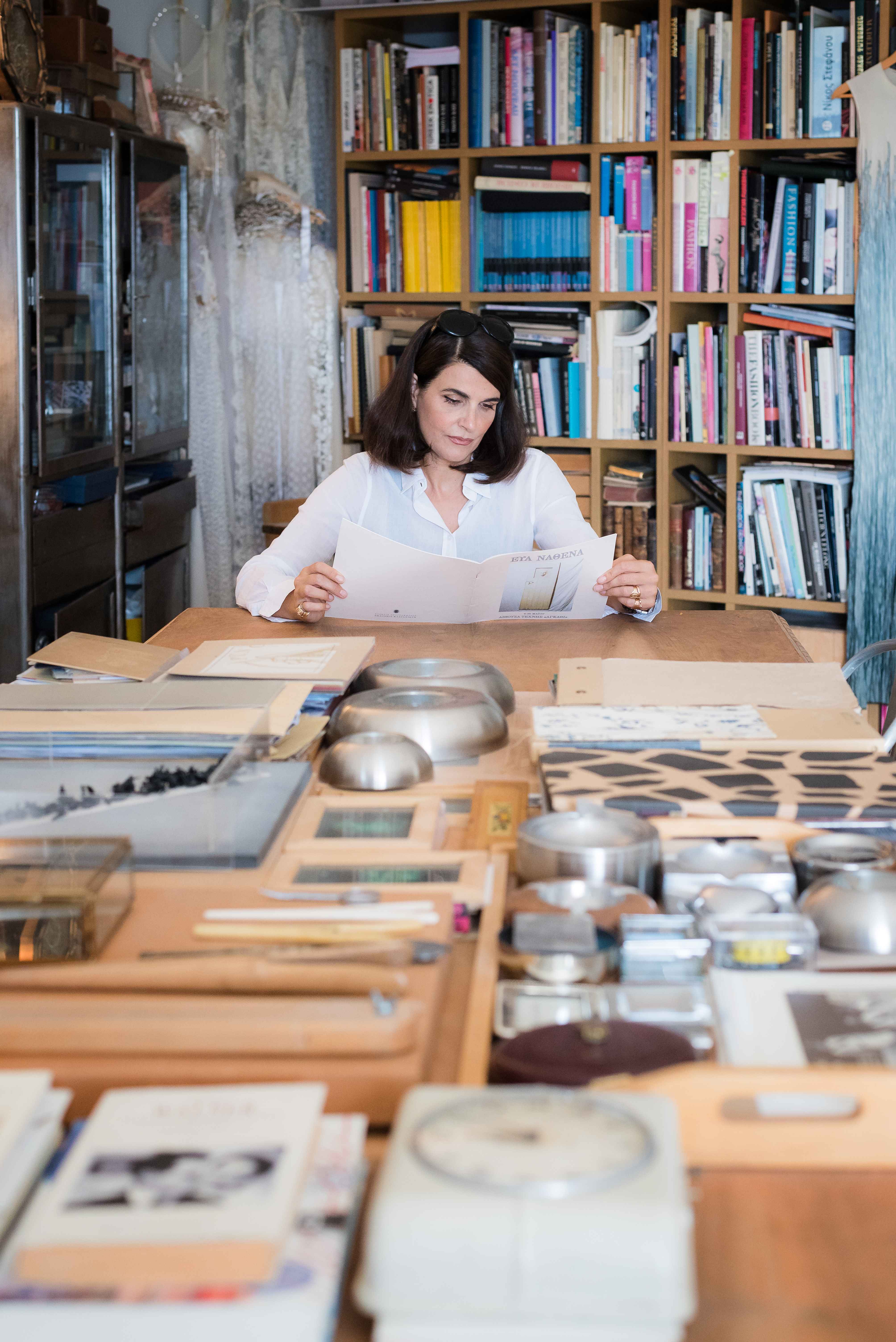 Η βασική μου σπουδή είναι η ζωγραφική. Η επιλογή, όμως, του επαγγέλματος που διάλεξα για να βιοποριστώ συνδέεται με τον χαρακτήρα μου: ήμουν τόσο εσωστρεφής, που η μοναχικότητα ενός ατελιέ δεν θα με ωφελούσε. Επέλεξα τη διαδρομή που με ξεβόλευε. Που με ανάγκαζε να συγχρωτιστώ με κόσμο, να διαπραγματευτώ, να διαχειριστώ, να ξεπεράσω τις φοβίες μου. Με ωφέλησε πάρα πολύ το επάγγελμά μου, αλλά πάντα το έκανα με τη σφραγίδα της ζωγράφου. Γιατί τι άλλο είναι οι σκηνογραφίες αν όχι εικαστικές εγκαταστάσεις; Λοιπόν, γνώρισα την Καρυοφυλλιά πριν από περίπου 20 χρόνια, στον “Άμλετ” της Μάγιας Λυμπεροπούλου. Κάναμε ατελείωτες κουβέντες τότε. Μεταξύ άλλων, μου είπε ότι διαπίστωνε πως συν-σκηνοθετούσα, ότι η δουλειά μου συμπλήρωνε τη σκηνοθεσία. Το έλεγε πολύ θερμά και το εννοούσε.