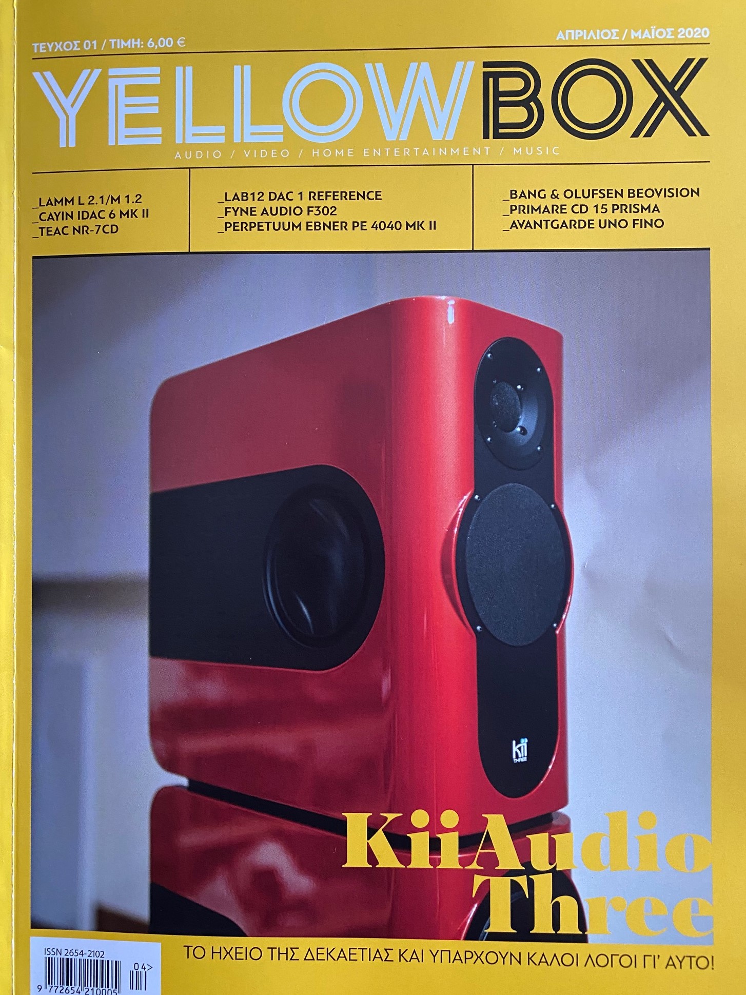 Αξίζει να σημειωθεί, ότι στο πρώτο τεύχος του YELLOWBOX υπάρχει η «παρθενική» παρουσίαση του Avant garde Uno Fino, ενός ηχείου με προσωπικότητα, της ιδιαίτερα όμορφης και τεχνολογικά εξελιγμένης τηλεόρασης της B&O Beovision Harmony με πάνελ από την LG, οι «θηριώδεις» ενισχυτές της LAMM, το USB DAC της CayinIdac-6MK2, το Kii Audio Three, ένα ηχείο που κυκλοφορεί στη αγορά «κάθε 10 χρόνια», μια πρόταση Έλληνα κατασκευαστή LAB12 με εξαγωγικό προφίλ, ένα ρεπορτάζ αγοράς για συσκευές Streaming και πολλά ακόμα θέματα. Επίσης, στο περιοδικό φιλοξενείται ένα εκτενές άρθρο με τις διαθέσιμες επιλογές streaming στην Ελλάδα καθώς και για πρώτη φορά, κριτική βιβλίων με αναλυτική παρουσίαση του τίτλου “H Τζούλιετ γυμνή” του Νικ Χόρνμπυ.