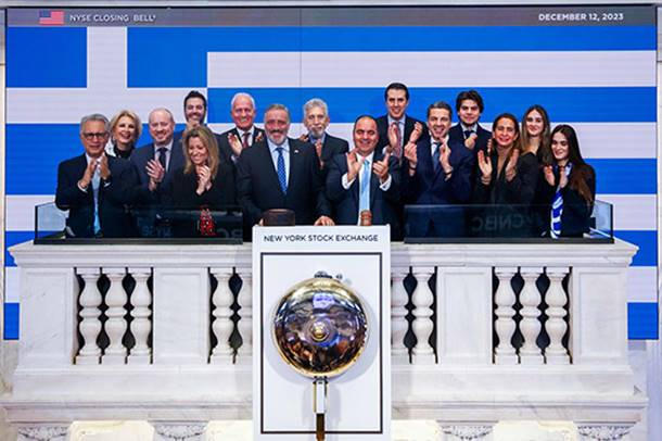 Στη συνέχεια ο Δρ. Νίκος Τσάκος, Founder, President & CEO, TEN Ltd. (NYSE: TNP) και ο CEO, ATHEX Group κ. Γιάννος Κοντόπουλος χτύπησαν το “Closing Bell”, το καμπανάκι της Λήξης των εργασιών της Τρίτης 12 Δεκεμβρίου, 2023, του NYSE-New York Stock Exchange πλαισιωμένοι από τον Vice Chairman του NYSE & President του NYSE Institute, Intercontinental Exchange Inc. (NYSE: ICE), κ. John Tuttle, την Πρόεδρο της Κεφαλαιαγοράς κυρία Βασιλική Λαζαράκου, τον κ. Nikos Stathopoulos, Chairman of Europe & Member of the Management Committee-BC Partners, και εκπροσώπους των ακόλουθων εισηγμένων εταιρειών στο NYSE: