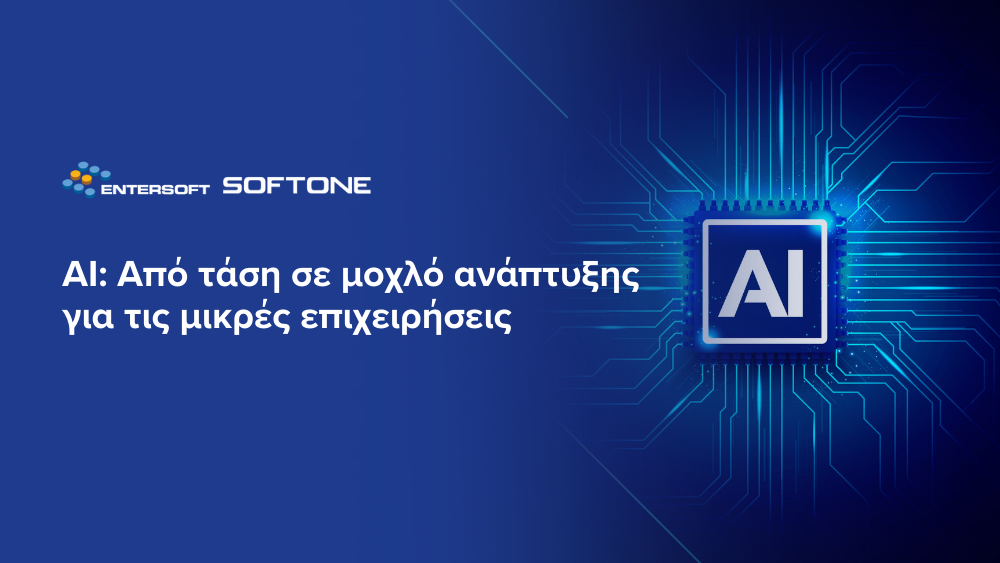 Με συνεργάτη την Entersoft-SOFTONE, κάθε επιχείρηση, ανεξαρτήτως μεγέθους, μπορεί να δρέψει τα οφέλη που εισάγει η Τεχνητή Νοημοσύνη στην επιχειρηματικότητα. Ακολουθώντας πρώτη τις εξελίξεις, αναπτύσσει εδώ και χρόνια εφαρμογές και εργαλεία AI τα οποία ενσωματώνονται ήδη στα προϊόντα της. Και χάρη στις τεχνολογίες web και cloud μπορεί να κάνει αυτές τις τεχνολογίες προσβάσιμες σε όλους, καθώς οι λύσεις της είναι επεκτάσιμες και προσαρμόζονται στις ανάγκες κάθε επιχείρησης. Έτσι οι μικρομεσαίες επιχειρήσεις δεν αποκλείονται από την καινοτομία και επωφελούνται άμεσα.