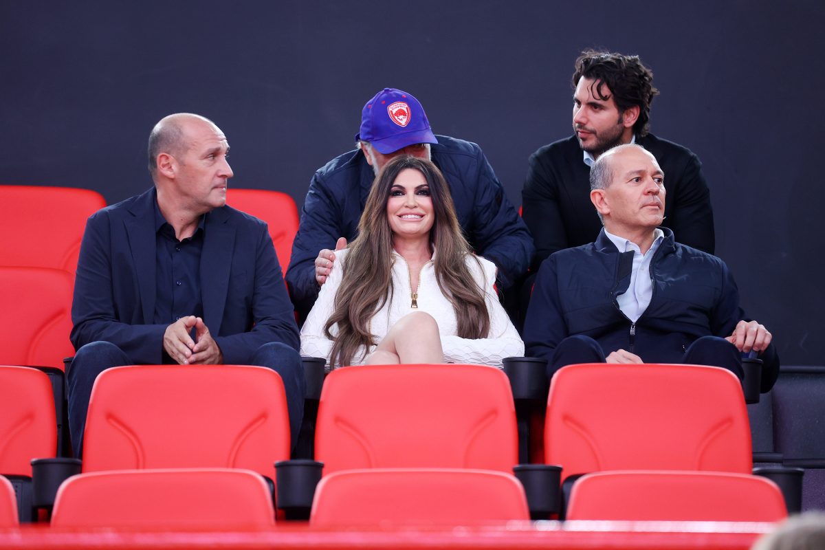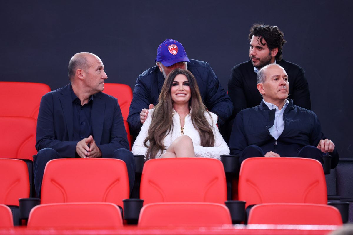 H Αμερικανίδα πρέσβης κάθισε στις εξέδρες των επισήμων ανάμεσα στους ιδιοκτήτες της ΚΑΕ Ολυμπιακός, Παναγιώτη και Γιώργο Αγγελόπουλο