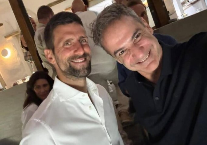 Η συνάντησή τους έγινε στην Τήνο όπου ο Σέρβος τενίστας συνεχίζει τις καλοκαιρινές του διακοπές και την γνωστοποίησε με ανάρτησή του ο πρωθυπουργός στα μέσα κοινωνικής δικτύωσης.