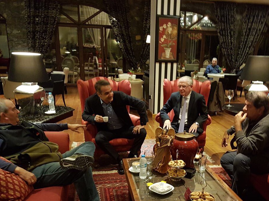 Ο κ.Μητσοτάκης επισκέφθηκε χθες την Τρίπολη επ’ αφορμή της πρώτης προεκλογικής συγκέντρωσης του υποψηφίου Περιφερειάρχη Πελοποννήσου Παναγιώτη Νίκα και καθ’οδόν προς την αρκαδική πρωτεύουσα σταμάτησε στο χωριό Κάψιας όπου βρισκόταν ο πρώην Πρωθυπουργός. Οι δύο άνδρεςτα είπαν για αρκετή ώρα συζητώντας κυρίως την πορεία της Νέας Δημοκρατίας προς το συνέδριο της προσεχούς εβδομάδας παρουσία των δύο πρώην γραμματέων της Νέας Δημοκρατίας Λευτέρη Ζαγορίτη και Ανδρέα Λυκουρέντζου αλλά και του πρώην Υπουργού Νίκου Καλτεζιώτη .