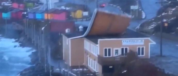 Τη στέγη εστιατορίου ξήλωσε ο δυνατός άνεμος που χτύπησε λιμάνι του Καναδά.