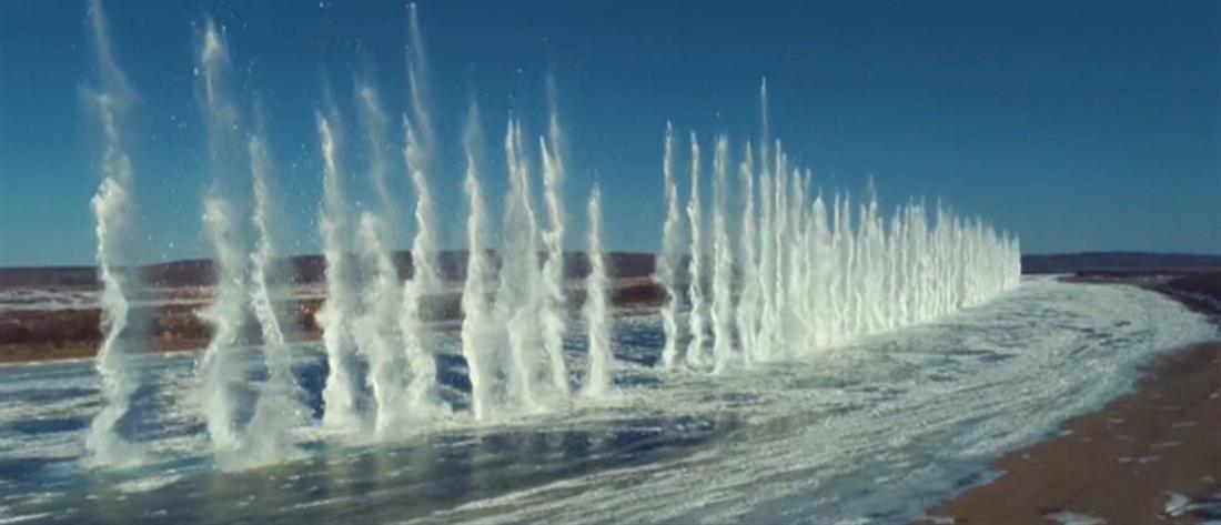 Η σειρά εκρηκτικών που προκάλεσαν την έκρηξη, εκτόξευσαν κομμάτια πάγου στον αέρα, χαρίζοντας στους μάρτυρες ένα μοναδικό θέαμα.