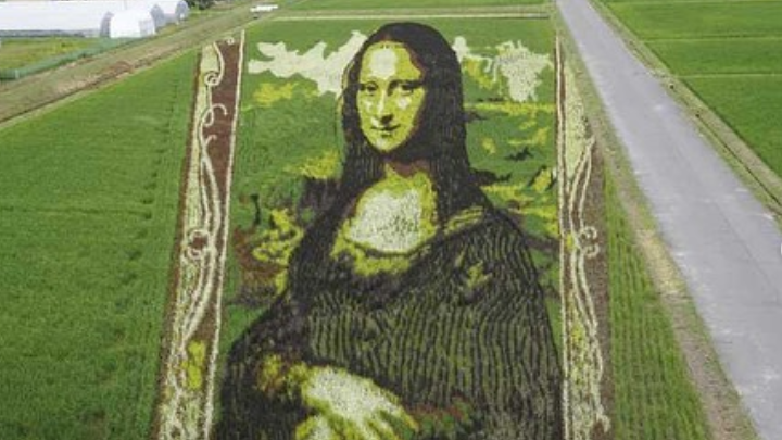 Κάθε χρόνο από το 1993, στο Inakadate μεταμορφώνουν τα ρυζοχώραφα σε ζωντανά έργα τέχνης, φυτεύοντας διαφορετικές ποικιλίες ρυζιού σε περίτεχνα σχέδια. Φέτος, στο ένα ρυζοχώραφο απεικονίζεται η εμβληματική «Mona Lisa» του μαιτρ της Αναγέννησης Λεονάρντο ντα Βίντσι και στο άλλο ο πίνακας «Παραλίμνια» του Ιάπωνα καλλιτέχνη του 19ου και 20ού αιώνα Seiki Kuroda, το οποίο είναι ένα πορτρέτο της συζύγου του, Taneko Kaneko.