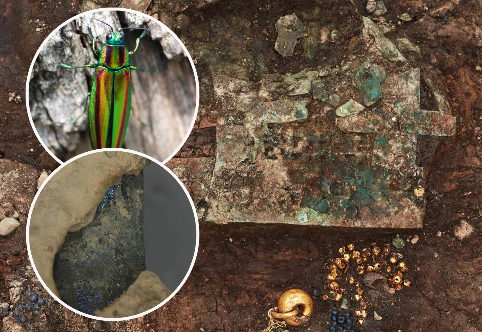 Από όλα τα ευρήματα, το στέμμα ξεχώρισε ως το πιο εντυπωσιακό που έχει βρεθεί ποτέ στην περιοχή Gyeongju, σύμφωνα με τους ειδικούς. Όταν εστάλη για εργασίες συντήρησης και διερεύνησης, αποκαλύφθηκε ότι ήταν ακόμη πιο ξεχωριστό απ’ όσο φαινόταν αρχικά: ήταν διακοσμημένο με πολύχρωμα φτερά από σκαθάρια jewel beetles, πολλά από τα οποία παρέμειναν στη θέση τους επί 14 αιώνες.