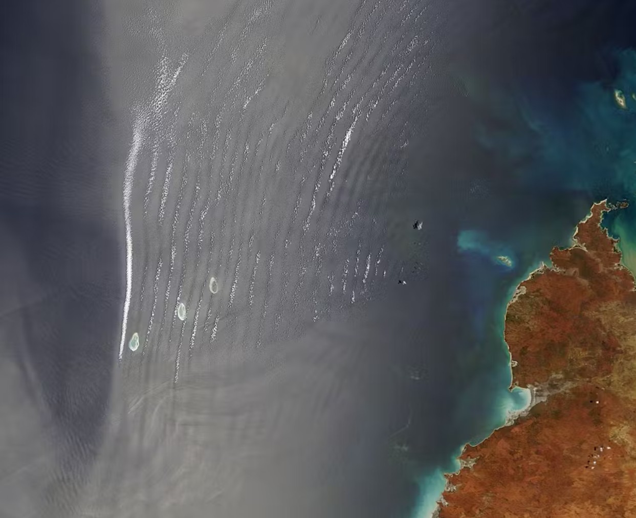 Ατμοσφαιρικά κύματα μπορούν μερικές φορές να φανούν στα σύννεφα. | Photo: Jeff Schmaltz/NASA
