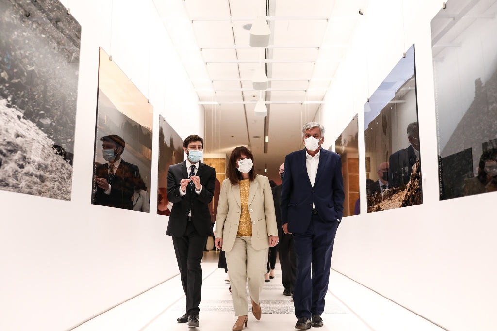 H κυρία Σακελλαροπούλου, εξέφρασε τη χαρά της για την επίσκεψή της στον χώρο του Εθνικού Μουσείου Σύγχρονης Τέχνης, καθώς και για το γεγονός ότι επανέρχεται σταδιακά στην πλήρη καθημερινή λειτουργία του.