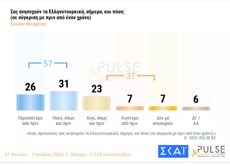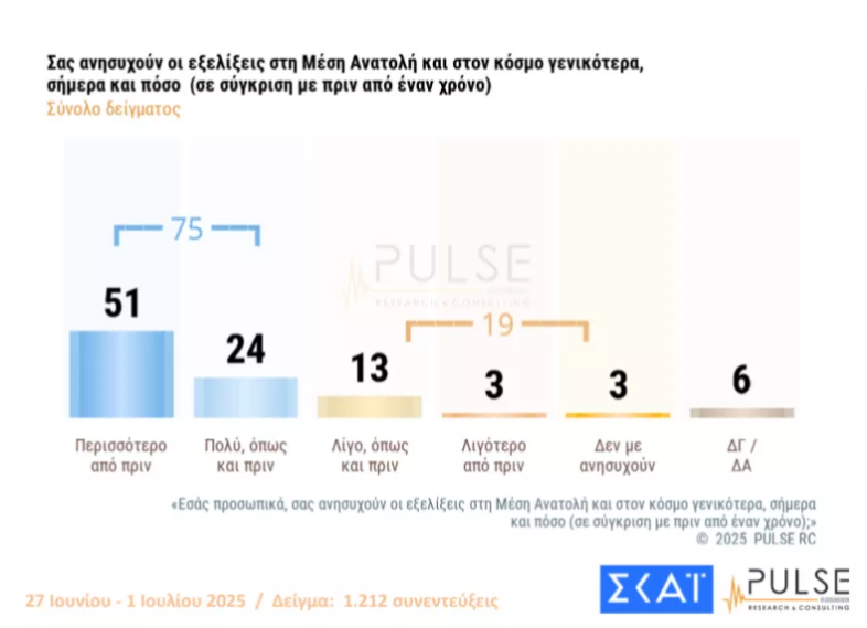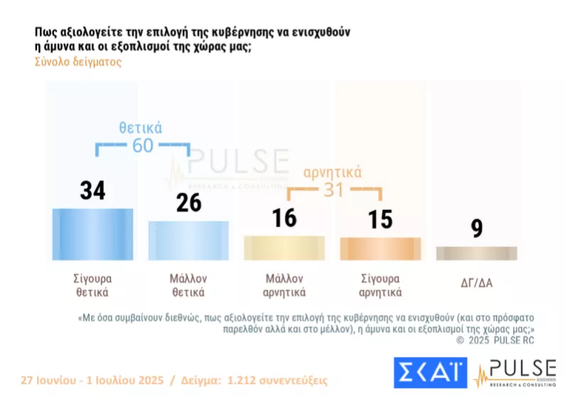 Στα υπόλοιπα ερωτήματα, οι πολίτες κλήθηκαν να απαντήσουν σχετικά με τα ελληνοτουρκικά, τις εξελίξεις στη Μέση Ανατολή και τις επιλογές της κυβέρνησης στα εξοπλιστικά.