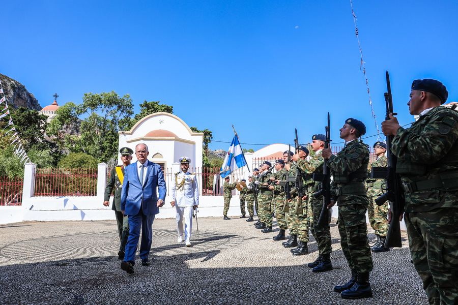 (Ξένη Δημοσίευση) Ο Πρόεδρος της Δημοκρατίας Κωνσταντίνος Τασούλας επιθεωρεί άγημα, κατά τη διάρκεια των εκδηλώσεων για τον εορτασμό της 82ης επετείου απελευθέρωσης του Καστελλόριζου, Σάββατο 13 Σεπτεμβρίου 2025. Ο Πρόεδρος της Δημοκρατίας Κωνσταντίνος Τασούλας μετέβη στο Καστελλόριζο, για να παραστεί στις εκδηλώσεις που διοργανώνει ο Δήμος Μεγίστης για τον εορτασμό της 82ης Επετείου απελευθέρωσης του νησιού. ΑΠΕ-ΜΠΕ/ΠΡΟΕΔΡΙΑ ΤΗΣ ΔΗΜΟΚΡΑΤΙΑΣ/ΘΟΔΩΡΗΣ ΜΑΝΩΛΟΠΟΥΛΟΣ