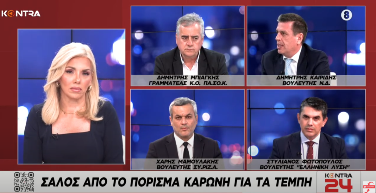Στο επίκεντρο της συζήτησης, στο studio του Kontra Channel και στην εκπομπή Kontra24 με την Λουκία Γκάτσου, το πόρισμα του καθηγητή Καρώνη για την τραγωδία στα Τέμπη.  Καλεσμένοι της εκπομπής ο βουλευτής της Νέας Δημοκρατίας, Δημήτρης Καιρίδης, ο γραμματέας της Κ.Ο του ΠΑΣΟΚ-ΚΙΝΑΛ, Δημήτρης Μπιαγκής, ο βουλευτής του ΣΥΡΙΖΑ-ΠΣ, Χάρης Μαμουλάκης και ο βουλευτής της Ελληνικής Λύσης, Στυλιανός Φωτόπουλος.
