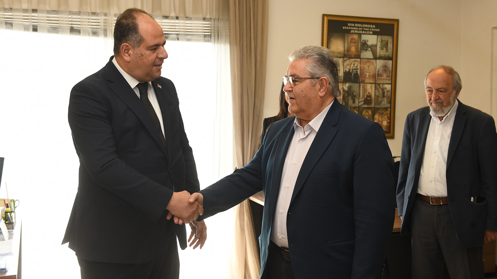 Ο γγ της ΚΕ του ΚΚΕ Δημήτρης Κουτσούμπας συναντήθηκε νωρίτερα σήμερα με τον πρέσβη της Παλαιστίνης Yussef Dorkhom στην παλαιστινιακή πρεσβεία, όπου μεταξύ άλλων τόνισε: