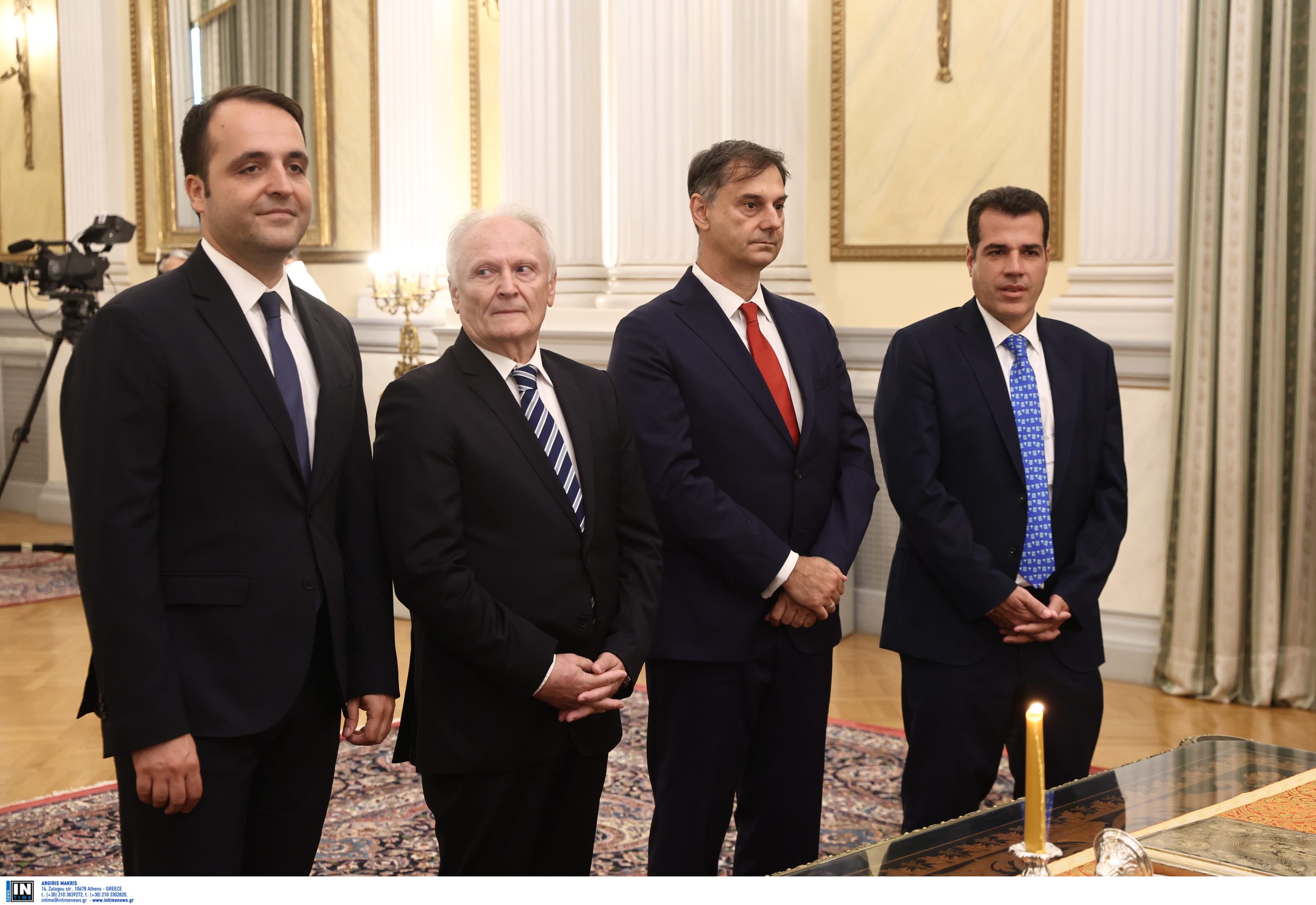Ενώπιον του Προέδρου της Δημοκρατίας Κωνσταντίνου Τασούλα, και παρουσία του πρωθυπουργού Κυριάκου Μητσοτάκη, ορκίσθηκαν από τον αρχιγραμματέα της Ιεράς Συνόδου αρχιμανδρίτη Ιωάννη Καραμούζη τα νέα μέλη της Κυβέρνησης.
