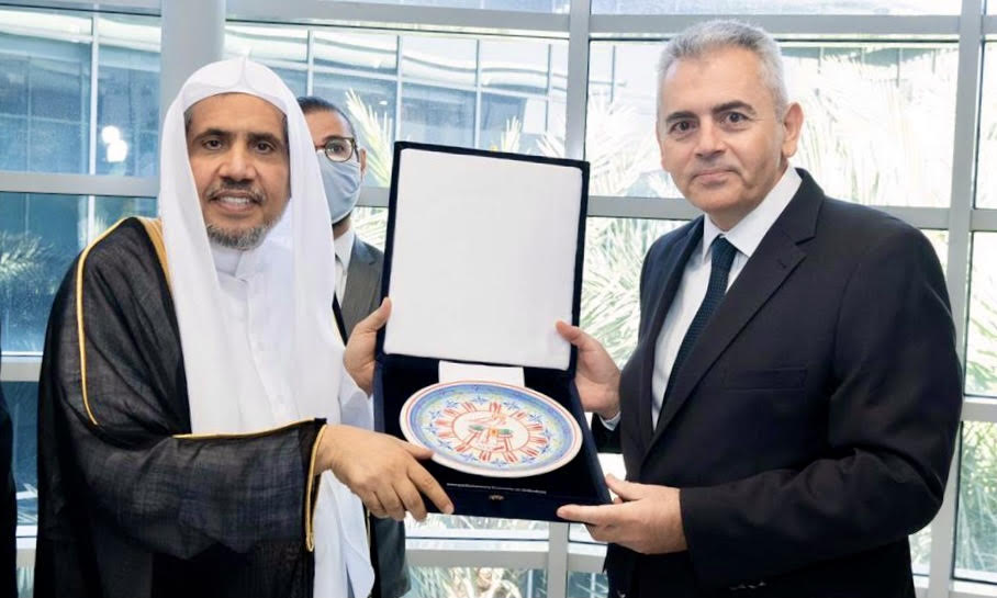Ο σεΐχης Mohammad Alissa υποδέχεται τον επικεφαλής της ΔΣΟ Μάξιμο Χαρακόπουλο στην έδρα της Παγκόσμιας Μουσουλμανικής Λίγκας.