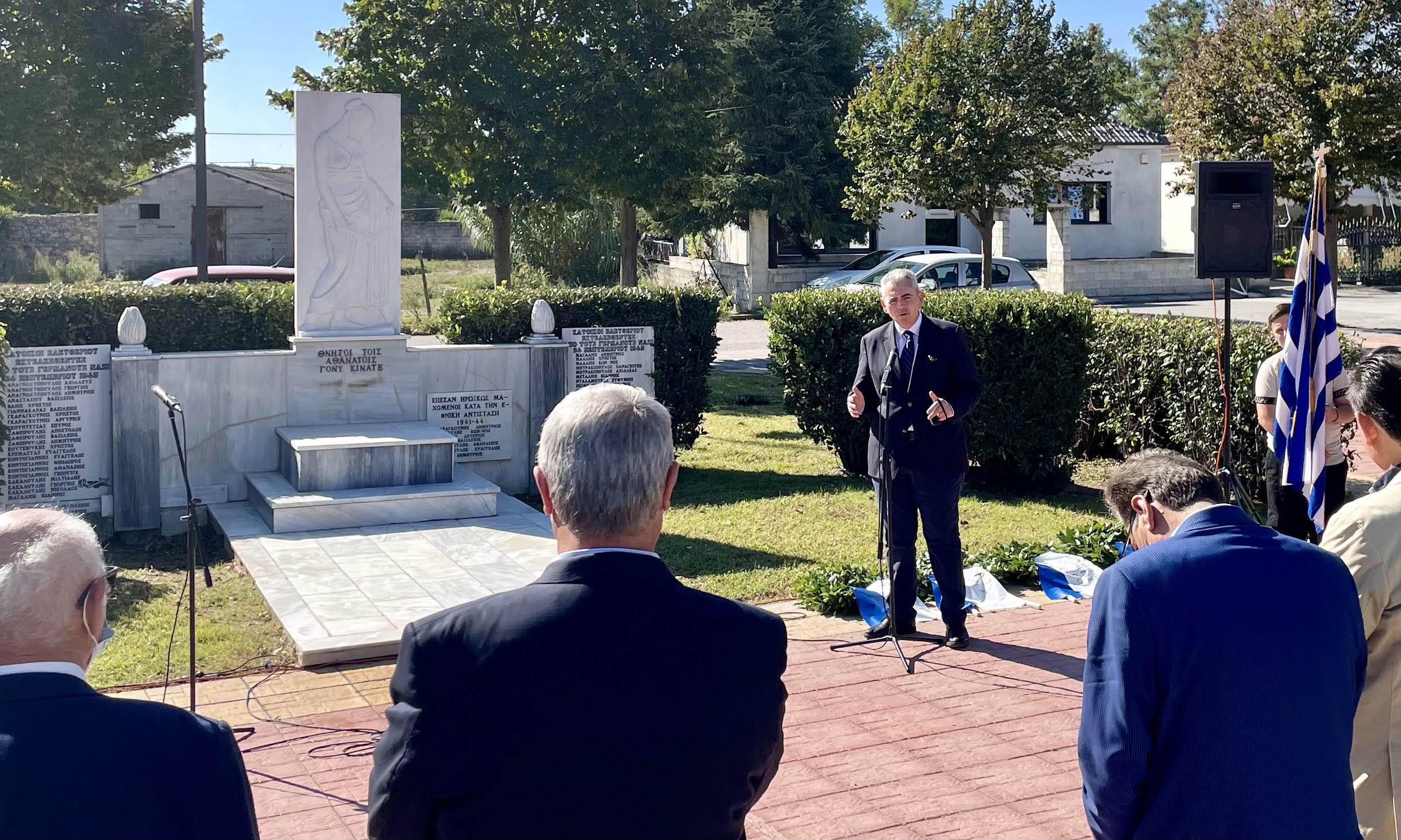Ο Μάξιμος Χαρακόπουλος μιλώντας στο μνημείο των 43 εκτελεσθέντων πατριωτών στο Ελευθέριο.