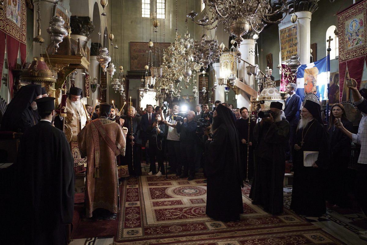 Ιδιαίτερα θα ήθελα να εκφράσω, εκ μέρους της Ελληνικής Κυβέρνησης, τον ειλικρινή σεβασμό και την ευγνωμοσύνη μας, για την Αυτού Θειοτάτη Μακαριότητα, τον Πατριάρχη Ιεροσολύμων κ. κ. Θεόφιλο, του οποίου η παρουσία σήμερα προσδίδει πνευματική λαμπρότητα και ευλογία.