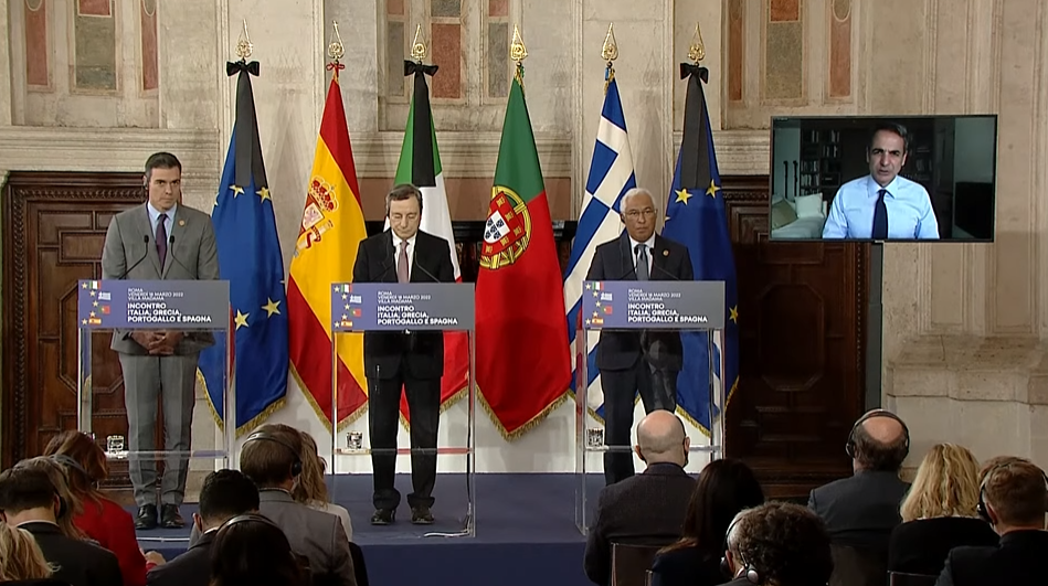 Η τετραμερής συνάντηση, στην οποία ο Έλληνας πρωθυπουργός συμμετείχε μέσω τηλεδιάσκεψης λόγω της ασθένειάς του με covid, φιλοξενήθηκε στην Ρώμη με οικοδεσπότη τον Μάριο Ντράγκι και την φυσική παρουσία των πρωθυπουργών της Ισπανίας Πέδρο Σάντσεθ και Πορτογαλίας Αντόνιο Κόστα.