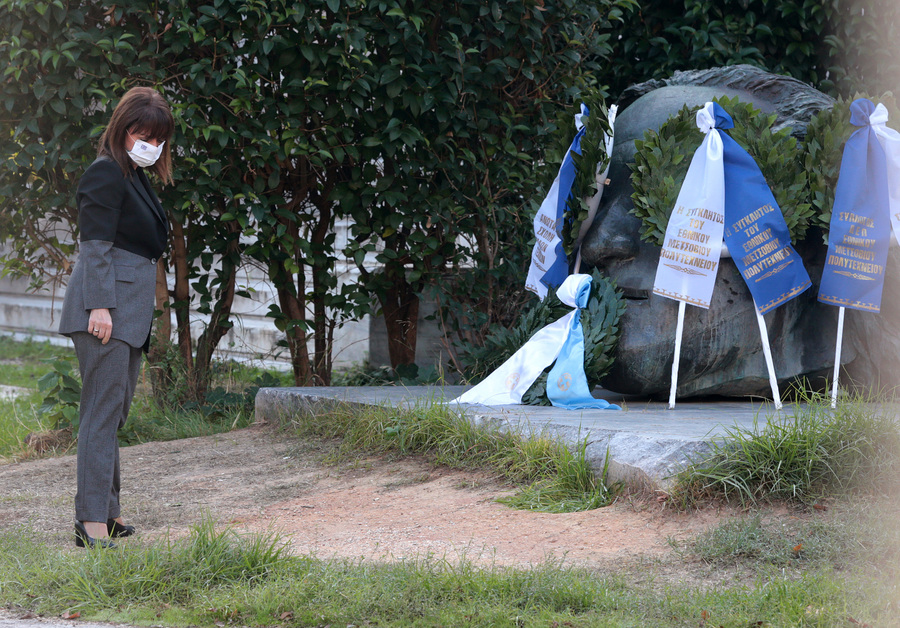 «Η εξέγερση του Πολυτεχνείου είναι η αφετηρία της μεταπολιτευτικής μας δημοκρατίας. Μία κορυφαία πράξη αντίστασης, ένα σύμβολο πολιτικής ελευθερίας και αυτοκαθορισμού, που δεν καθόρισε μόνο μία γενιά και τους αγωνιστές της, στους οποίους σήμερα οφείλουμε την πιο υψηλή τιμή, αλλά την πιο προοδευτική περίοδο της σύγχρονης ιστορίας μας» τόνισε η Πρόεδρος της Δημοκρατίας.