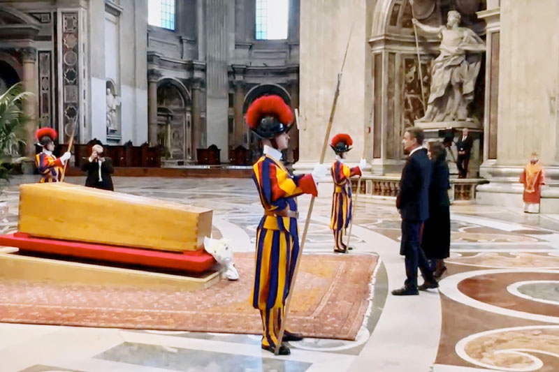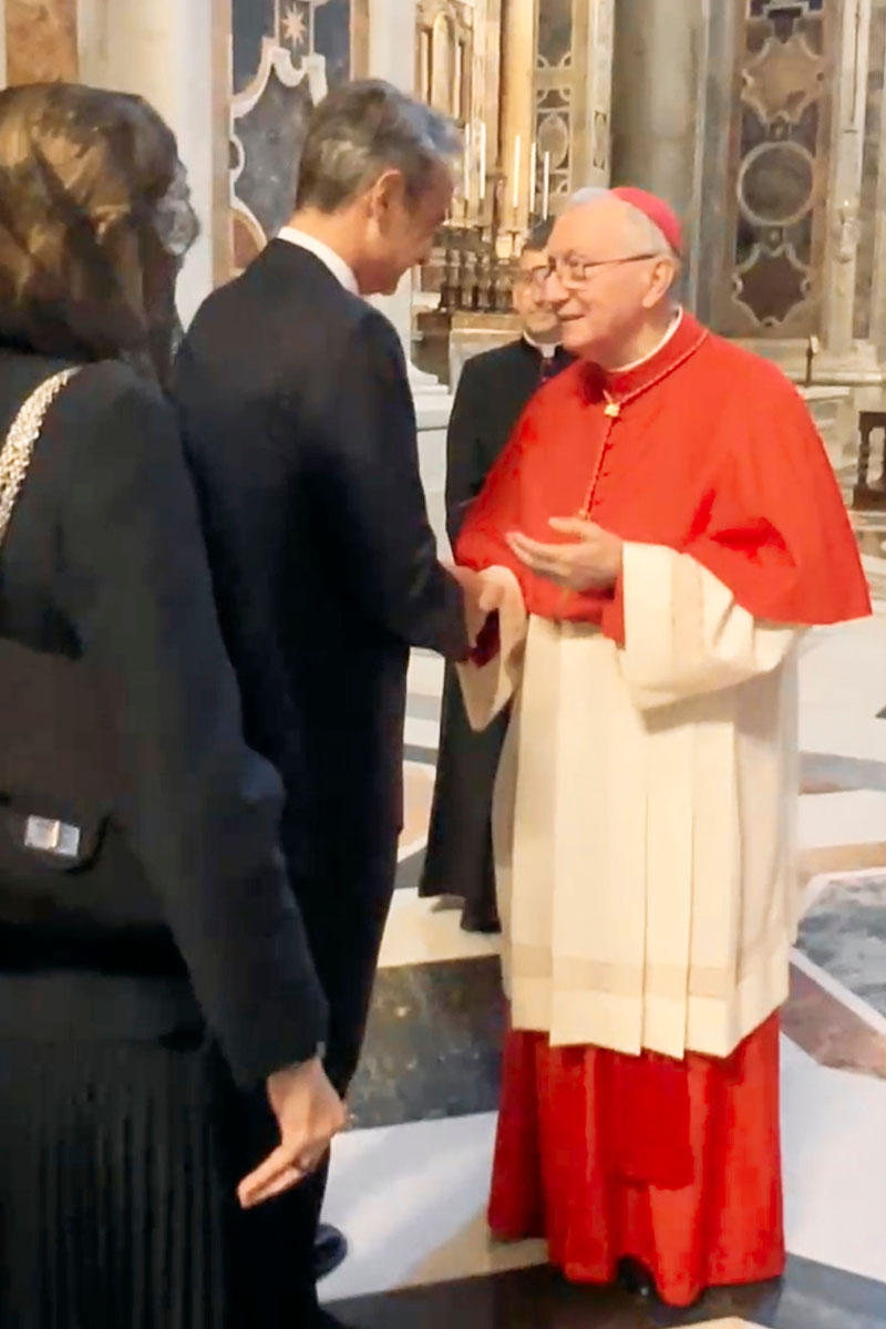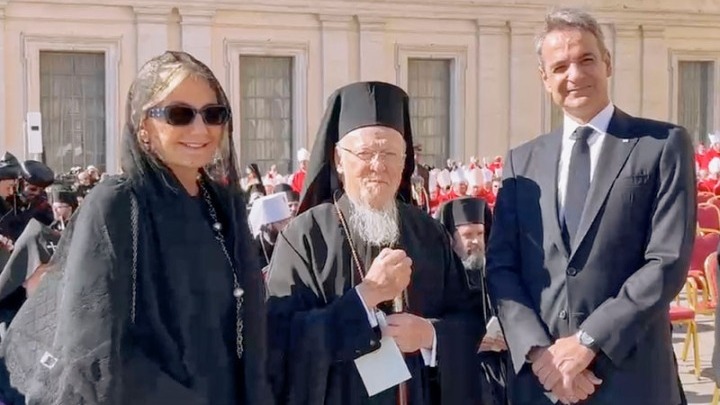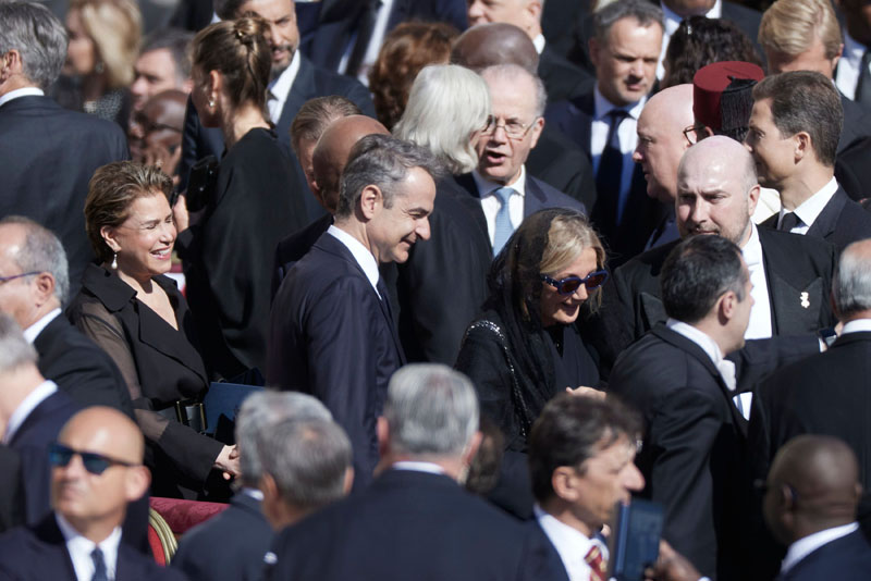 Ο πρωθυπουργός Κυριάκος Μητσοτάκης, συνοδευόμενος από τη σύζυγό του Μαρέβα Γκραμπόφσκι – Μητσοτάκη, παραβρέθηκε στην εξόδιο ακολουθία του Πάπα Φραγκίσκου, στο Βατικανό.