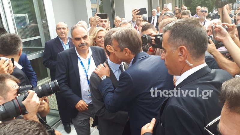 Τον πρωθυπουργό υποδέχθηκαν έξω από τα γραφεία της διοίκησης της ΔΕΘ-HELEXPO ο πρόεδρος της Τάσος Τζήκας και ο περιφερειάρχης Κεντρικής Μακεδονίας Απόστολος Τζιτζικώστας, ενώ τον περίμενε και ο ευρωβουλευτής της ΝΔ Στέλιος Κιμπουρόπουλος, τον οποίο ο πρωθυπουργός έσπευσε να χαιρετίσει.