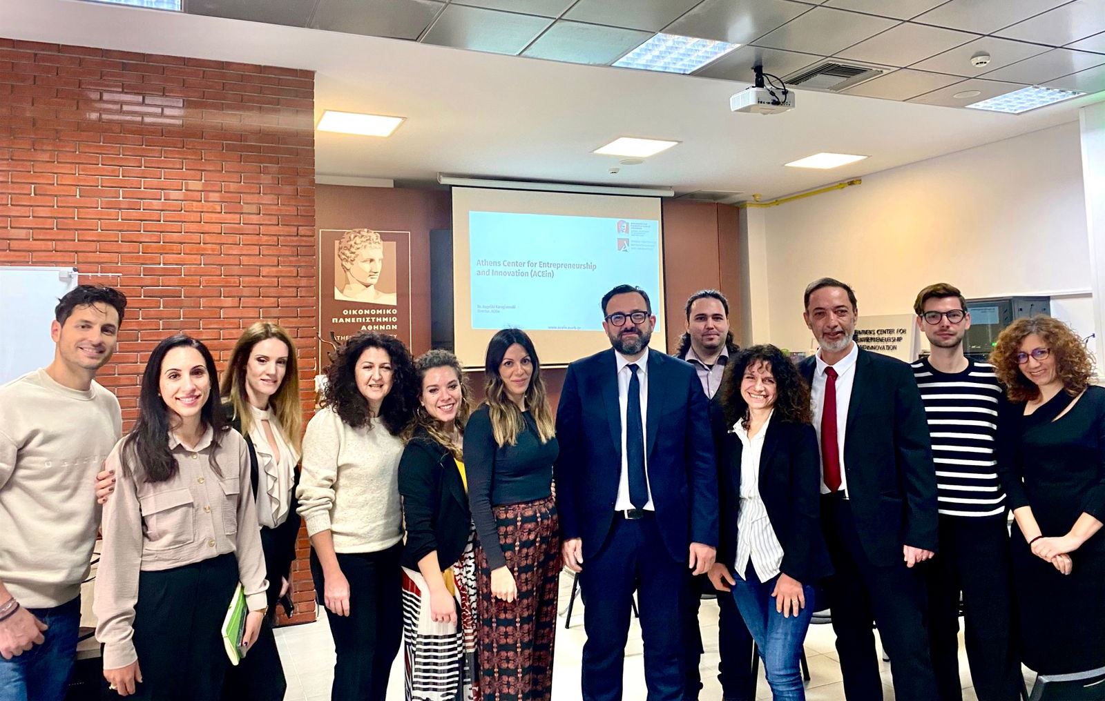 Στη συνέχεια, ο πρόεδρος της Επιτροπής Έρευνας και Τεχνολογίας συναντήθηκε στις εγκαταστάσεις του Κέντρου Επιχειρηματικότητας και Καινοτομίας ACEin με την επιστημονική υπεύθυνη Καθ. Κατερίνα Πραματάρη, Διευθυντές των Εργαστηρίων των Σχολών του ΟΠΑ, ερευνητικές ομάδες που έχουν υποστηριχθεί από τη δομή ACEin, και συζήτησε μαζί τους για τις πολιτικές υποστήριξης της έρευνας και της νεοφυούς επιχειρηματικότητας.