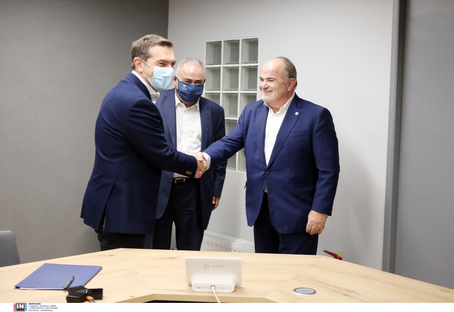 Τις προτάσεις του ΣΥΡΙΖΑ-ΠΣ για την ενίσχυση των μικρομεσαίων επιχειρήσεων -οι οποίες παρουσιάστηκαν πρώτα στην Διεθνή Έκθεση Θεσσαλονίκης- συζήτησε σήμερα ο πρόεδρος του κόμματος, Αλέξης Τσίπρας, με τον Γιώργο Καββαθά, πρόεδρο της Γενικής Συνομοσπονδίας Επαγγελματιών Βιοτεχνών και Εμπόρων Ελλάδας (ΓΣΕΒΕΕ) και με τον Γιάννη Χατζηθεοδοσίου, πρόεδρο της Κεντρικής Ένωσης Επιμελητηρίων Ελλάδος (ΚΕΕΕ).