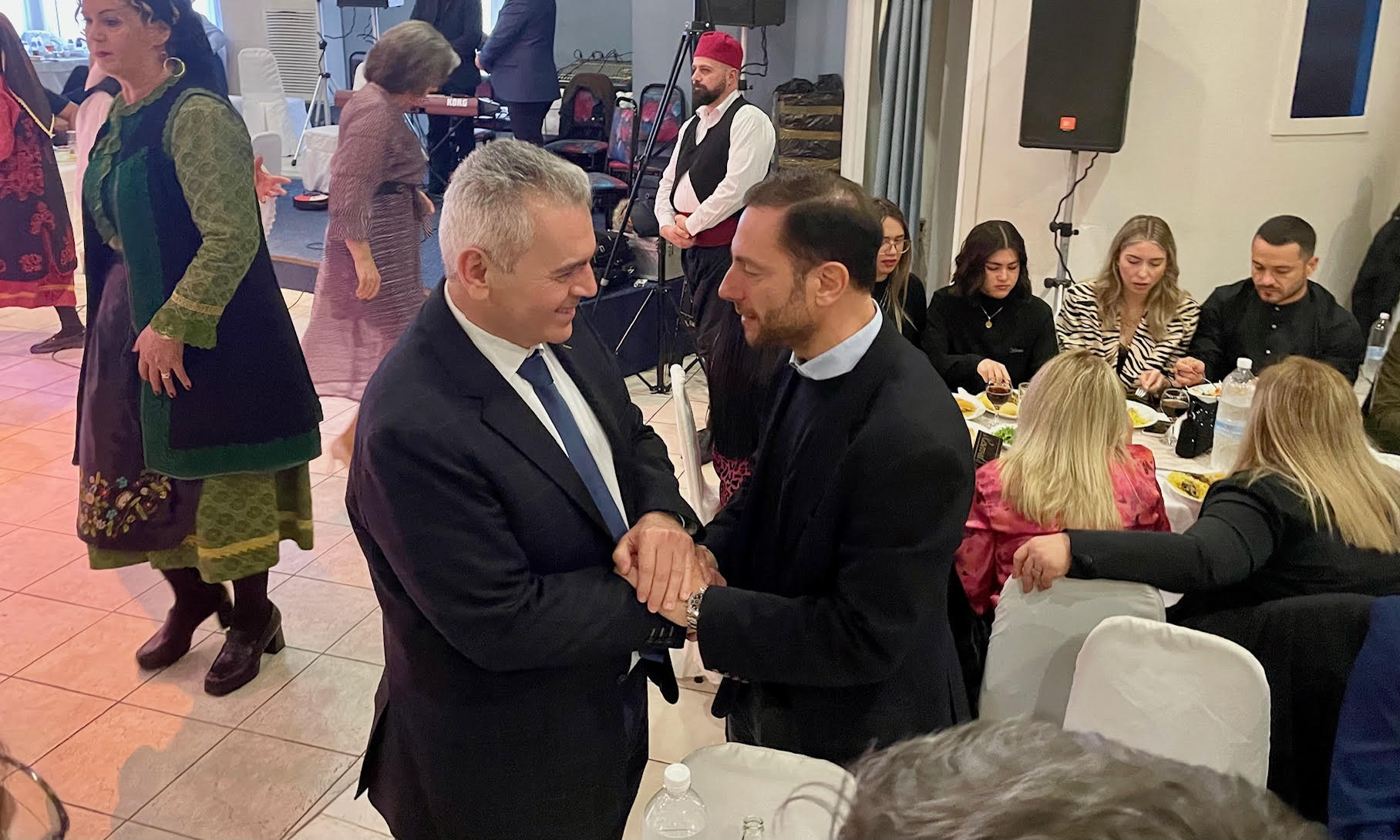 Ο Θεσσαλός πολιτικός χαιρέτισε «ιδιαίτερα τον καλό φίλο Βαγγέλη Ντούλε, (βουλευτή στο αλβανικό κοινοβούλιο) με τον οποίο συνεργαζόμαστε στην Διακοινοβουλευτική Συνέλευση Ορθοδοξίας και κρατά ψηλά την σημαία των βορειοηπειρωτικών ζητημάτων σε αυτό το διακοινοβουλευτικό φόρουμ, στο οποίο συμμετέχουμε. Επίσης, τον Αντιπεριφερειάρχη που ήρθε από την Βόρειο Ήπειρο, τον κ. Χρήστο Κίτσιο. Δεν θα κάνω ιδιαίτερες αναφορές σε άλλους, αλλά το οφείλω στον Δήμαρχο Αγιάς, (Αντώνη Γκουντάρα) γιατί ξέρω ότι συνδράμει ουσιαστικά τους Δήμους της Ελληνικής Εθνικής μειονότητας της Βορείου Ηπείρου».