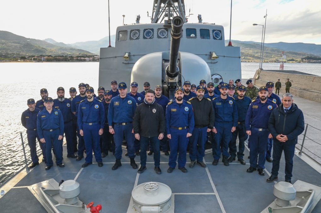 Επίσης, επισκέφθηκε το ταχύ περιπολικό κατευθυνόμενων βλημάτων «Μυκόνιος», που βρίσκεται σε αποστολή στην ευρύτερη θαλάσσια περιοχή του Βόρειου Αιγαίου.