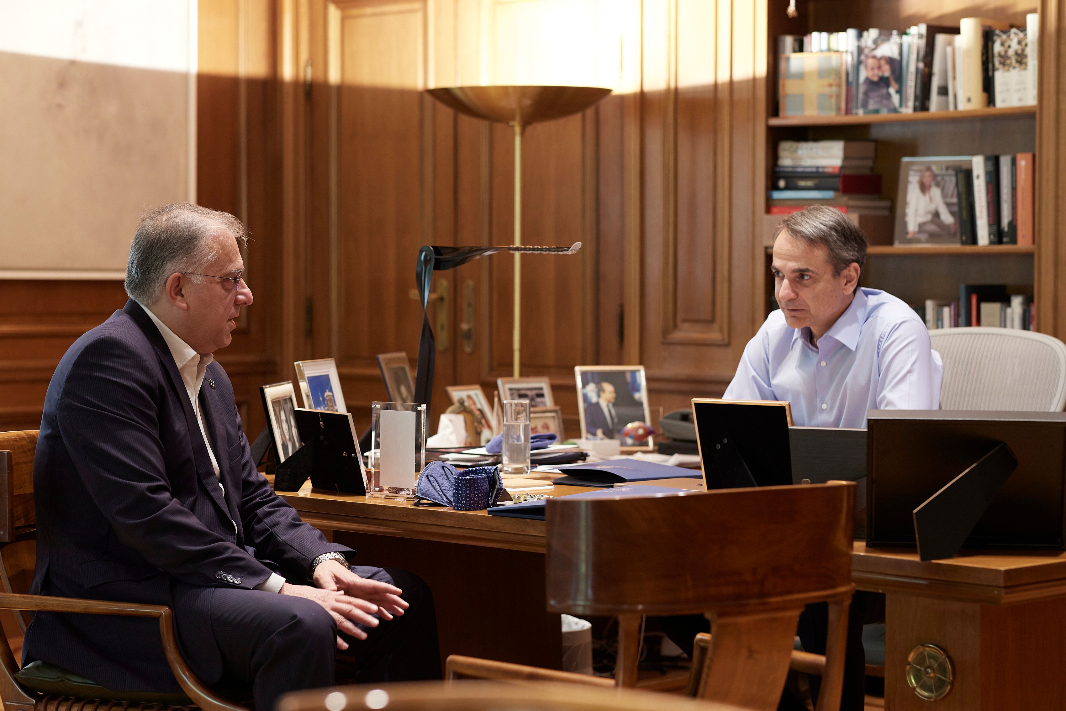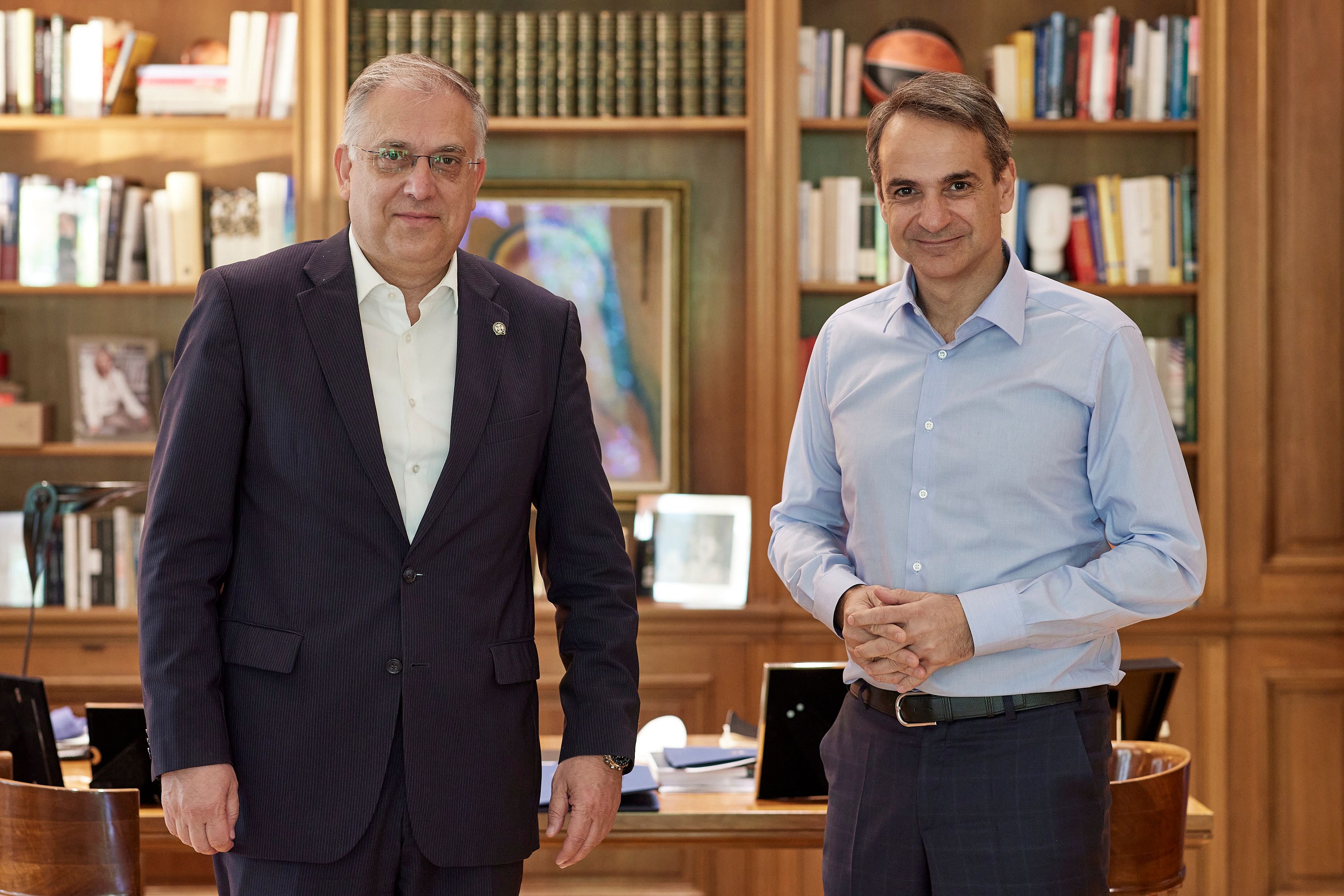 Ο Πρωθυπουργός και Πρόεδρος της Νέας Δημοκρατίας, Κυριάκος Μητσοτάκης, είχε σήμερα συνάντηση στο γραφείο του, στο Μέγαρο Μαξίμου, με τον Υπουργό Προστασίας του Πολίτη, Τάκη Θεοδωρικάκο.