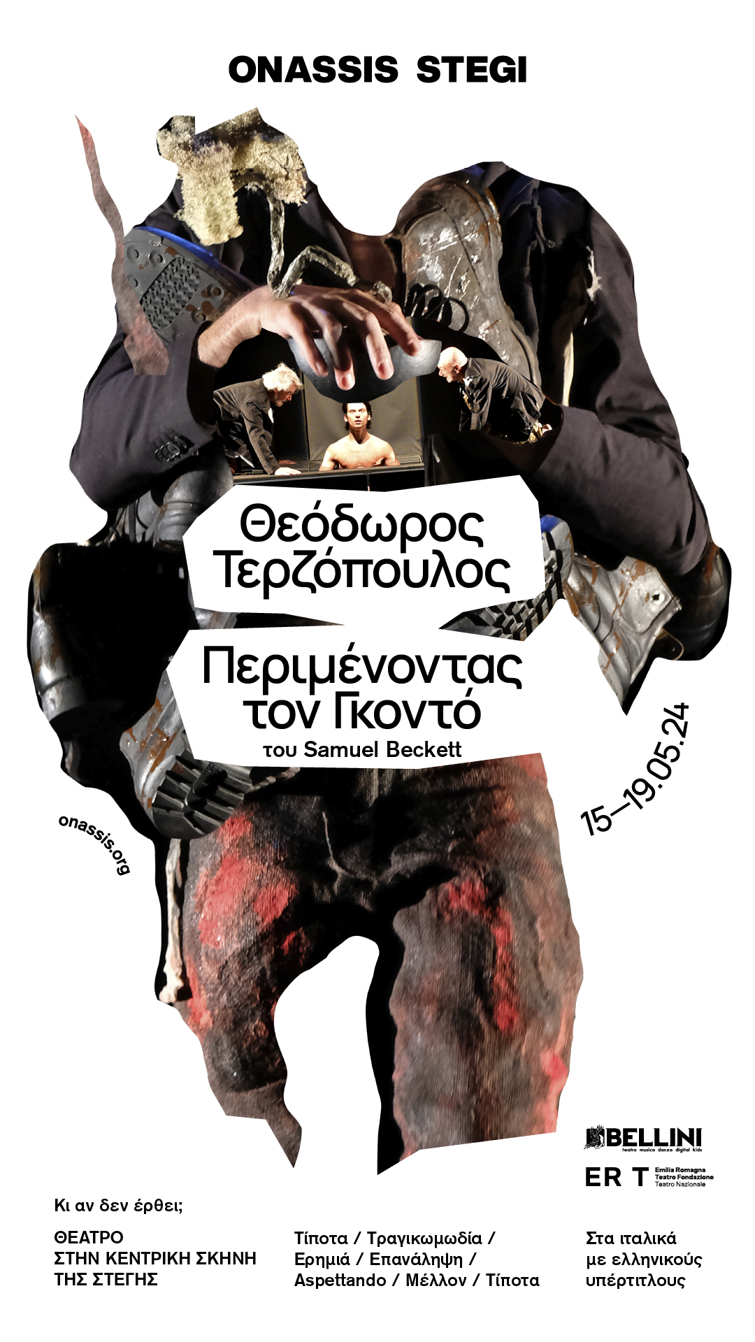 * To “Περιμένοντας τον Γκοντό”, έργο μνημειακό, στα όρια της υψηλής ποίησης και της αυθάδικης κωμωδίας, παρουσιάζεται στην Κεντρική Σκηνή της Στέγης (Λεωφόρος Συγγρού 107) από τις 15 έως τις 19 Μαΐου, στις 20.30. Τη σκηνοθεσία υπογράφει ο πιο διεθνής Έλληνας σκηνοθέτης του θεάτρου, ο Θεόδωρος Τερζόπουλος, που κατευθύνει ένα εξαιρετικό ιταλικό καστ σε μια μεγάλη συμπαραγωγή του Emillia Romagna Teatro, που βρίσκεται σε παγκόσμια περιοδεία.
