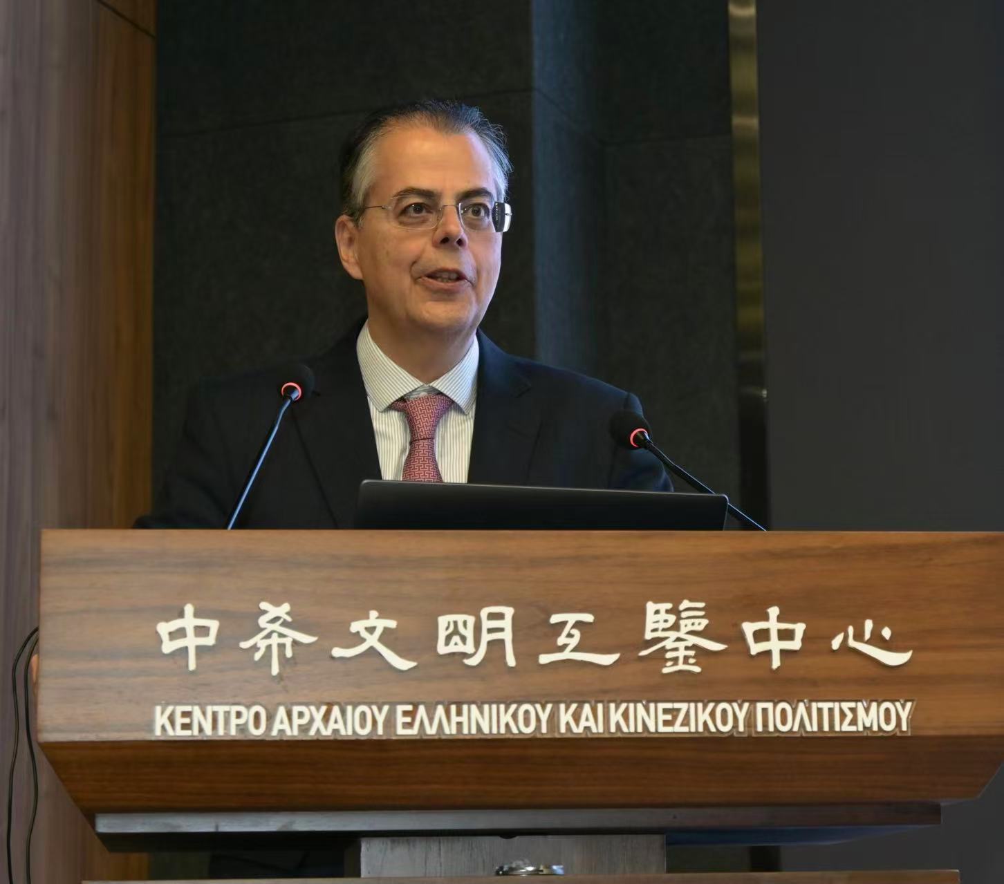 Χαιρετισμό απηύθυνε και ο διευθυντής του Κέντρου για την Κίνα Cui Yanqiang, ο οποίος τόνισε ότι η αδιάκοπη αναζήτηση του Καζαντζάκη για την ελευθερία και την ειρήνη, καθώς και οι βαθυστόχαστες σκέψεις του για τη συνύπαρξη και την κοινή άνθηση των πολιτισμών, εξακολουθούν να μας εμπνέουν σχεδόν έναν αιώνα μετά.