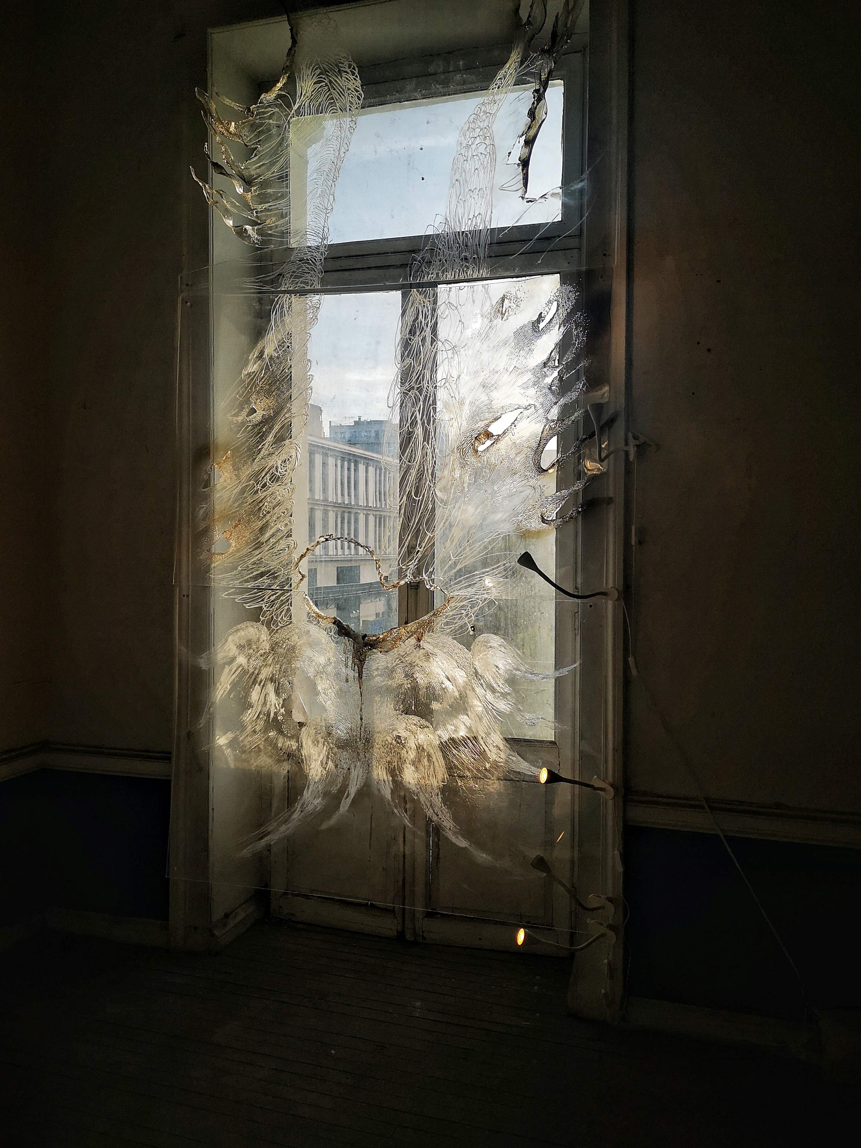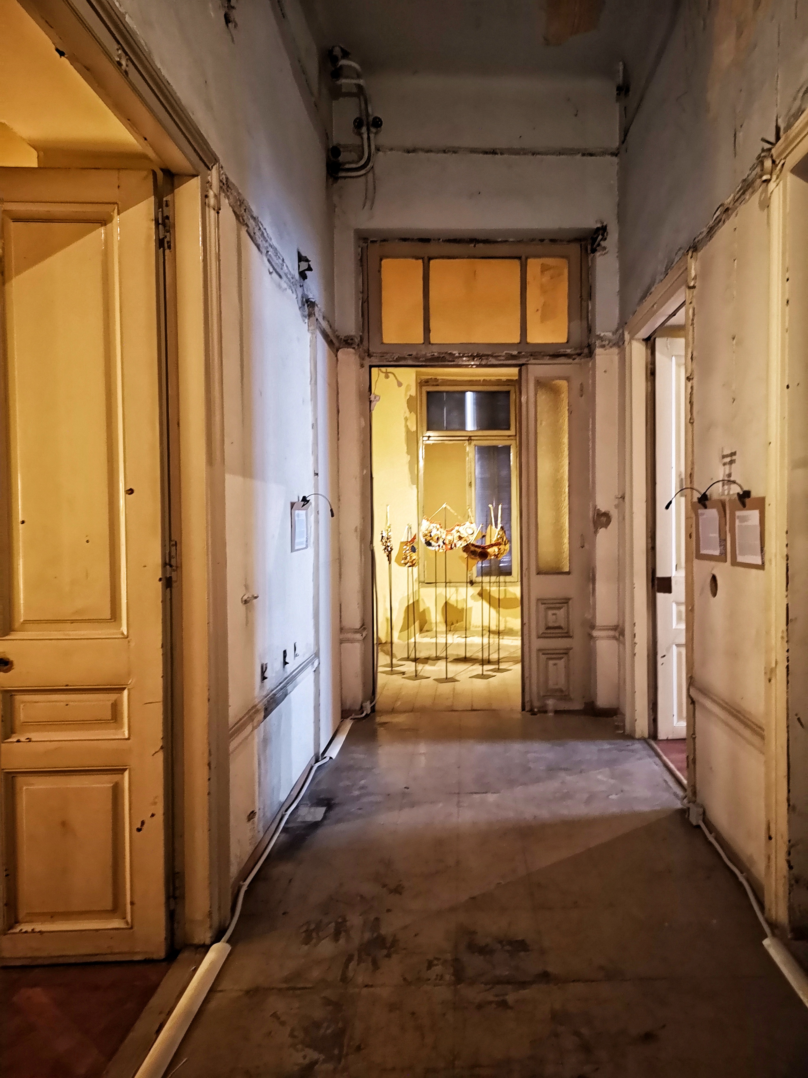 Και, παρόλο που το concept δεν είναι ασυνήθιστο στη σύγχρονη τέχνη, ο χώρος στον οποίο φιλοξενούνται τα έργα είναι πολύ ιδιαίτερος. Το Μέγαρο Σλήμαν-Μελά βρίσκεται στην οδό Πανεπιστημίου 46, στο κέντρο της Αθήνας, και είναι ένα κρυφό διαμάντι της πρωτεύουσας, αφού, εδώ και καιρό, η φθαρμένη του μεγαλοπρέπεια παρέμενε αθέατη για τα μάτια των πολλών. Χτίστηκε το 1890 για λογαριασμό του ερασιτέχνη αρχαιολόγου Ερρίκου Σλήμαν από τον Ερνέστο Τσίλερ, ο οποίος, ως γνωστόν, κατασκεύασε πολλά κτίρια στην πόλη. Ο αρχικός σκοπός του Μεγάρου ήταν να στεγάσει την οικογένεια του Σλήμαν, στη συνέχεια, όμως, άλλαξε διάφορους ρόλους. Έγινε παράρτημα του Αρσακείου Κολεγίου, χρησιμοποιήθηκε ως ξενοδοχείο, στέγασε καταστήματα αλλά και δικηγορικά και συμβολαιογραφικά γραφεία-ακόμα μπορεί να δει κανείς μια σχετική ταμπέλα έξω από μια πόρτα στον ημιώροφο. Τώρα το κτίριο, στο οποίο φώλιαζε ο ιστορικός κινηματογράφος “Ιντεάλ” και το θρυλικό ομώνυμο εστιατόριο, πρόκειται να ανακαινιστεί και να μετατραπεί και πάλι σε ξενοδοχείο, με αποκατεστημένα όλα τα αρχιτεκτονικά και διακοσμητικά στοιχεία που χάθηκαν με την πάροδο του χρόνου.