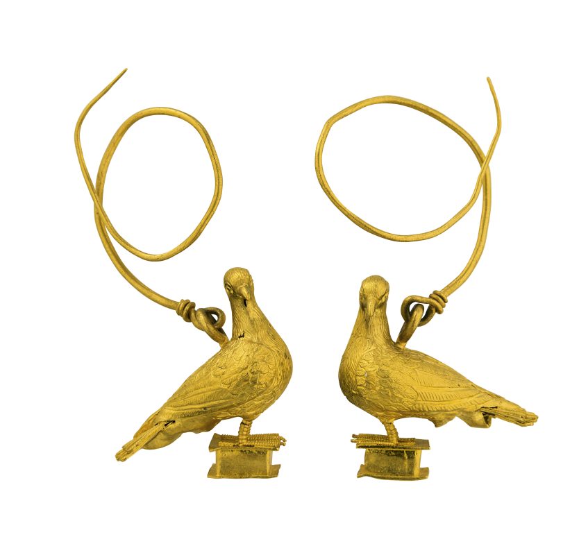 Ζεύγος χρυσών ενωτίων με τη μορφή περιστεριών που πατούν σε