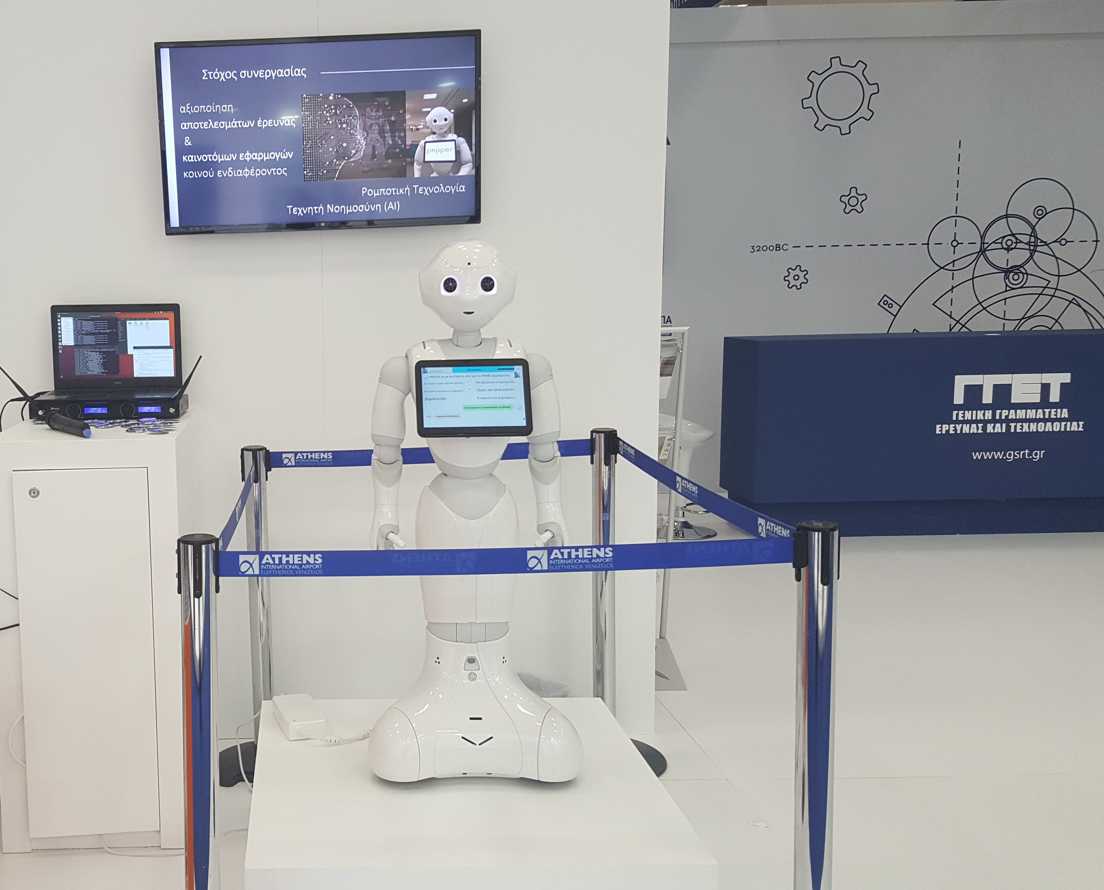 Το ρομπότ που ανήκει στον Διεθνή Αερολιμένα Αθηνών, παραχωρήθηκε στους ερευνητές του Εργαστηρίου Τεχνολογίας Γνώσεων και Λογισμικού (SKEL Lab) του Ινστιτούτου Πληροφορικής και Τηλεπικοινωνιών , οι οποίοι ανέπτυξαν στις εγκαταστάσεις του «Δημόκριτου» ένα νέο λογισμικό διαλογικού συστήματος, ενσωματώνοντας τεχνητή νοημοσύνη στον Pepper στα ελληνικά και στα αγγλικά.