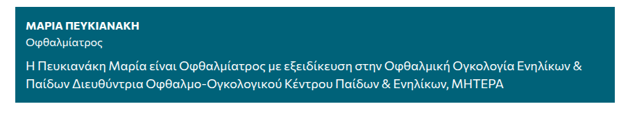 *Γράφει η Πευκιανάκη Μαρία, Οφθαλμίατρος με εξειδίκευση στην Οφθαλμική Ογκολογία Ενηλίκων & Παίδων Διευθύντρια Οφθαλμο-Ογκολογικού Κέντρου Παίδων & Ενηλίκων, ΜΗΤΕΡΑ
