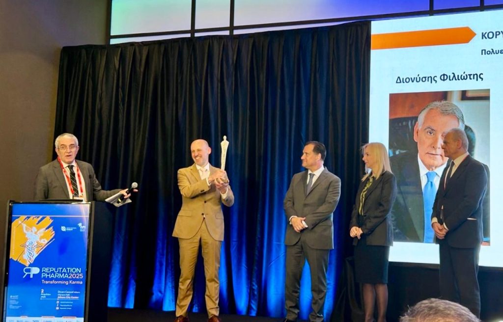 Η βράβευση του Διονυσίου Φιλιώτη πραγματοποιήθηκε στο πλαίσιο του Συνεδρίου Reputation Pharma 2025, από τον Υπουργό Υγείας Άδωνι Γεωργιάδη.